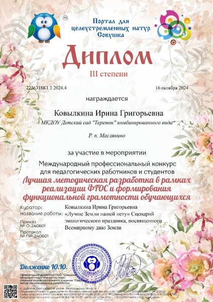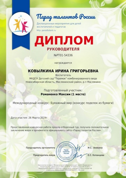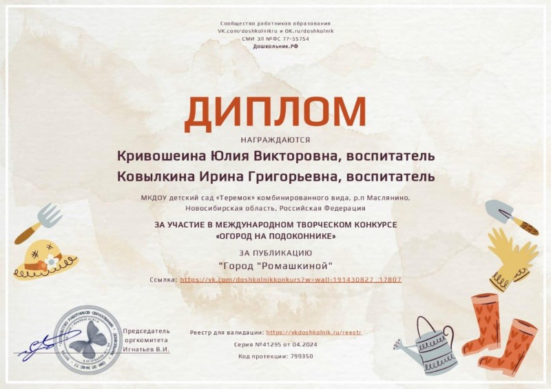 Персональный сайт воспитателя МКДОУ детского сада "Теремок"