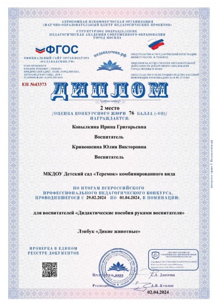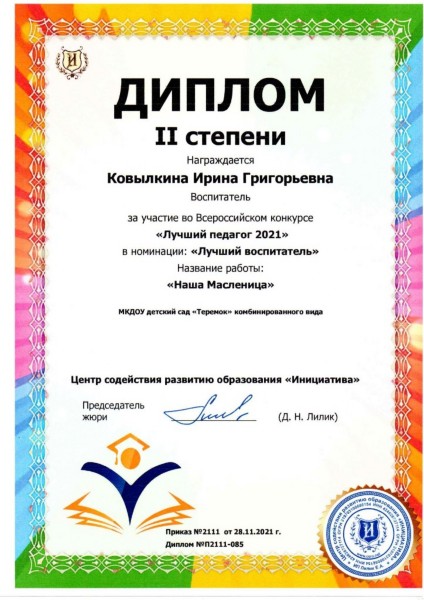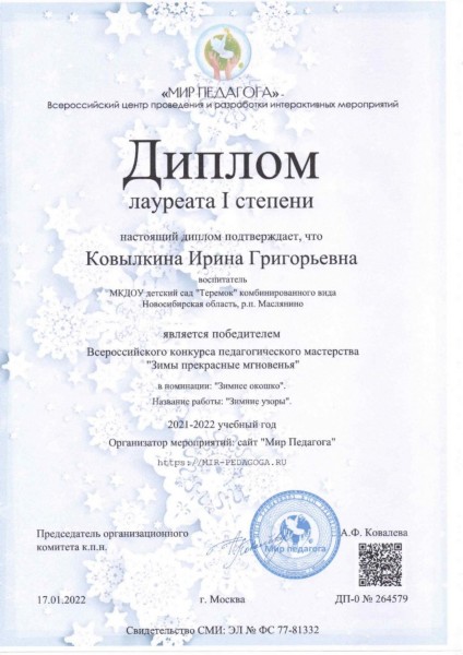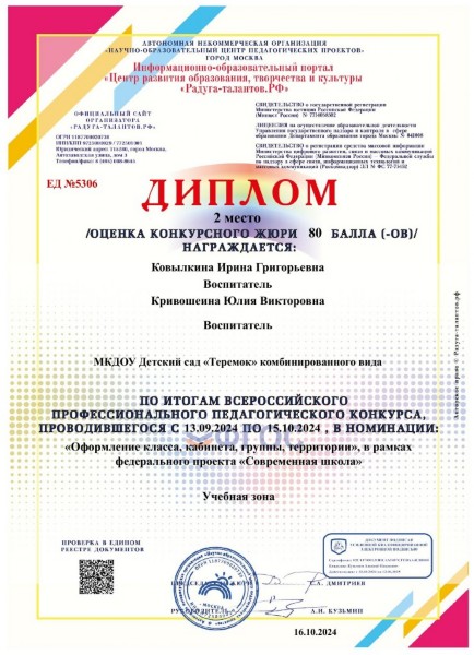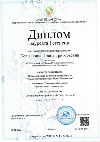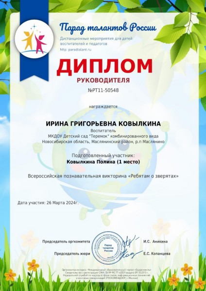 Персональный сайт воспитателя МКДОУ детского сада "Теремок"
